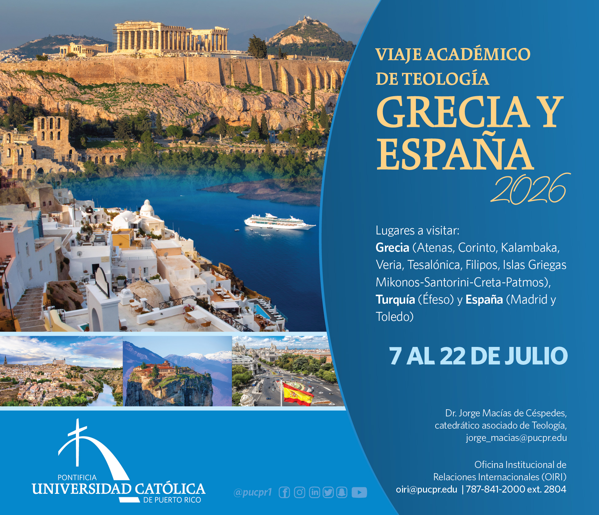Viajes académicos 2024-2025 || Viajes académicos 2023-2024 || Viajes académicos 2022-2023 | | Viajes académicos 2019-2020 Viajes Académicos 2025-2026 Arquitectura España 2026 Diseño de Modas España 2026 España Mística 2026 Inglés Oswego 2026 Teología Grecia y España 2026 Trabajo Social Colombia 2026 Bellas Artes Disney 2026 Liderazgo en un contexto Internacional España 2026 Contacto para información de los Viajes Académicos Forma de contacto para solicitar mayor información de los Viajes Académicos Nombre y apellidos Nombre Apellidos Correo electrónico Número de teléfonoNivel y programa académico que estudiaViaje académico de interésInformación que solicita